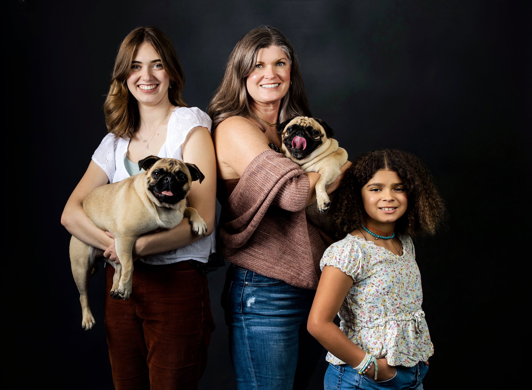 This is where the fun begins! Whether it’s your pet, kids, or the whole family, my goal is to capture genuine connections and create memorable images. At the studio, everyone can relax and be themselves—doggos, kiddos, and even grumpy spouses! We take breaks as needed, and many clients tell me how much they enjoy the experience. One little girl even asked to come every week! Don’t be surprised if your dog ends up in my lap for some extra love.
